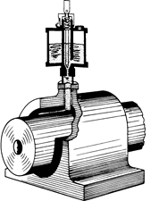 Esse dispositivo possui uma agulha que passa por um orifício e cuja ponta repousa sobre o eixo. Quando o eixo gira, imprime um movimento alternativo à agulha, liberando o fluxo de lubrificante, que continua fluindo enquanto dura movimento do eixo.